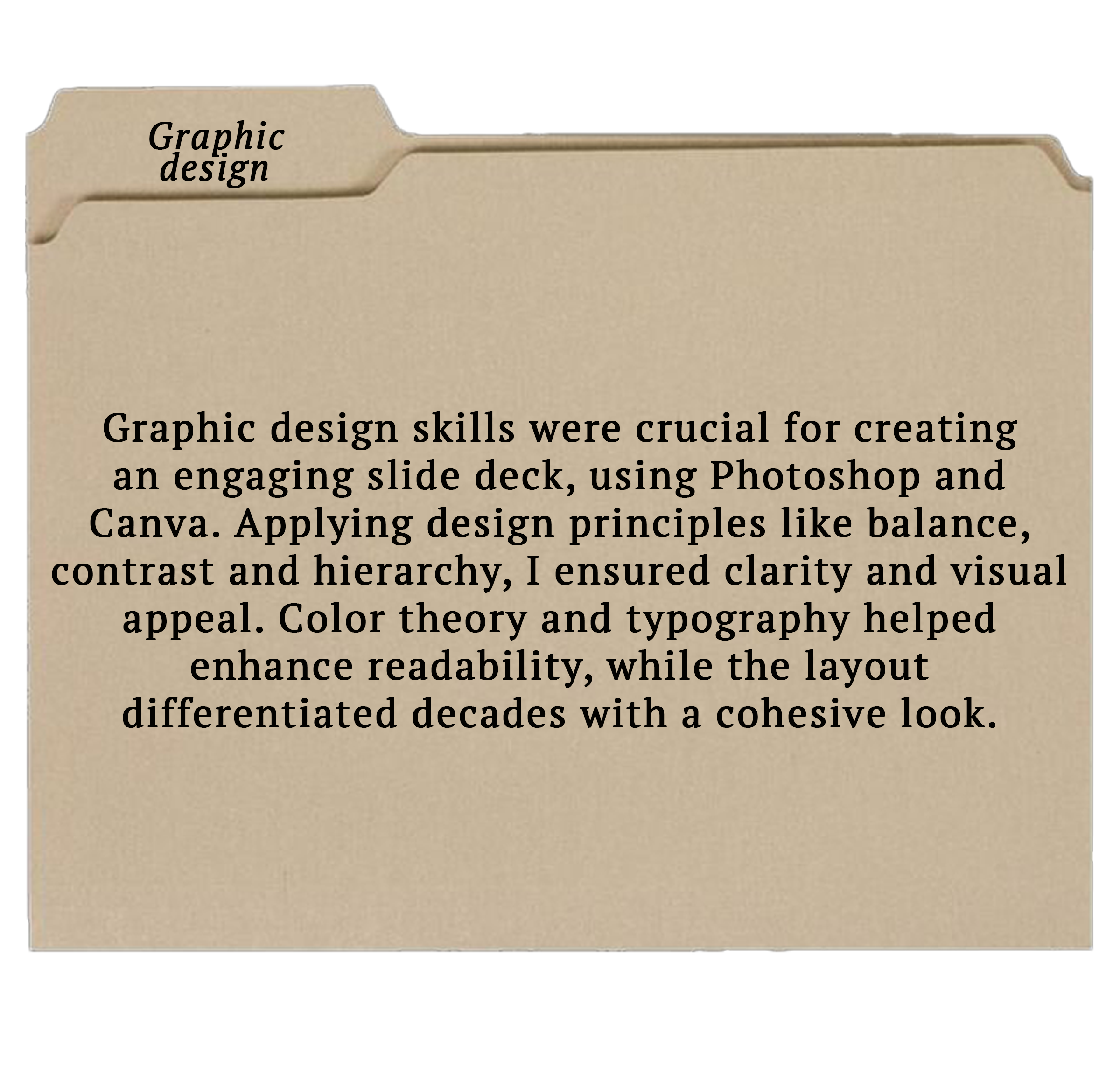 Creative expression was fostered through visual design, allowing me to develop a unique style while improving my research skills. I strengthened my critical thinking by analyzing how fashion trends respond to social and political changes. I gained a deeper understanding of cultural history and enhanced my writing skills by crafting clear introductory paragraphs and captions. Designing a visually engaging timeline improved my visual literacy and encouraged interdisciplinary connections across subjects.